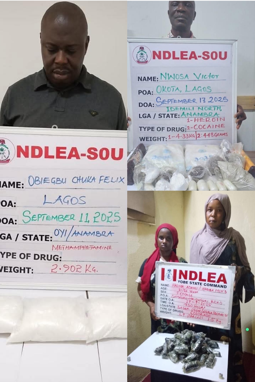 The National Drug Law Enforcement Agency (NDLEA) has intensified its nationwide offensive against drug cartels with the arrest of two major drug kingpins in Lagos, interception of consignments meant for bandits and terrorists in the North-East, and destruction of over 24,000 kilograms of cannabis farms in Edo State. According to the Agency, operatives of its Special Operations Unit (SOU) arrested 64-year-old Victor Nwosa and 49-year-old Felix Chika Obiegbu after weeks of surveillance exposed their criminal drug networks. Nwosa, who posed as a textile merchant, was picked up on Wednesday,…