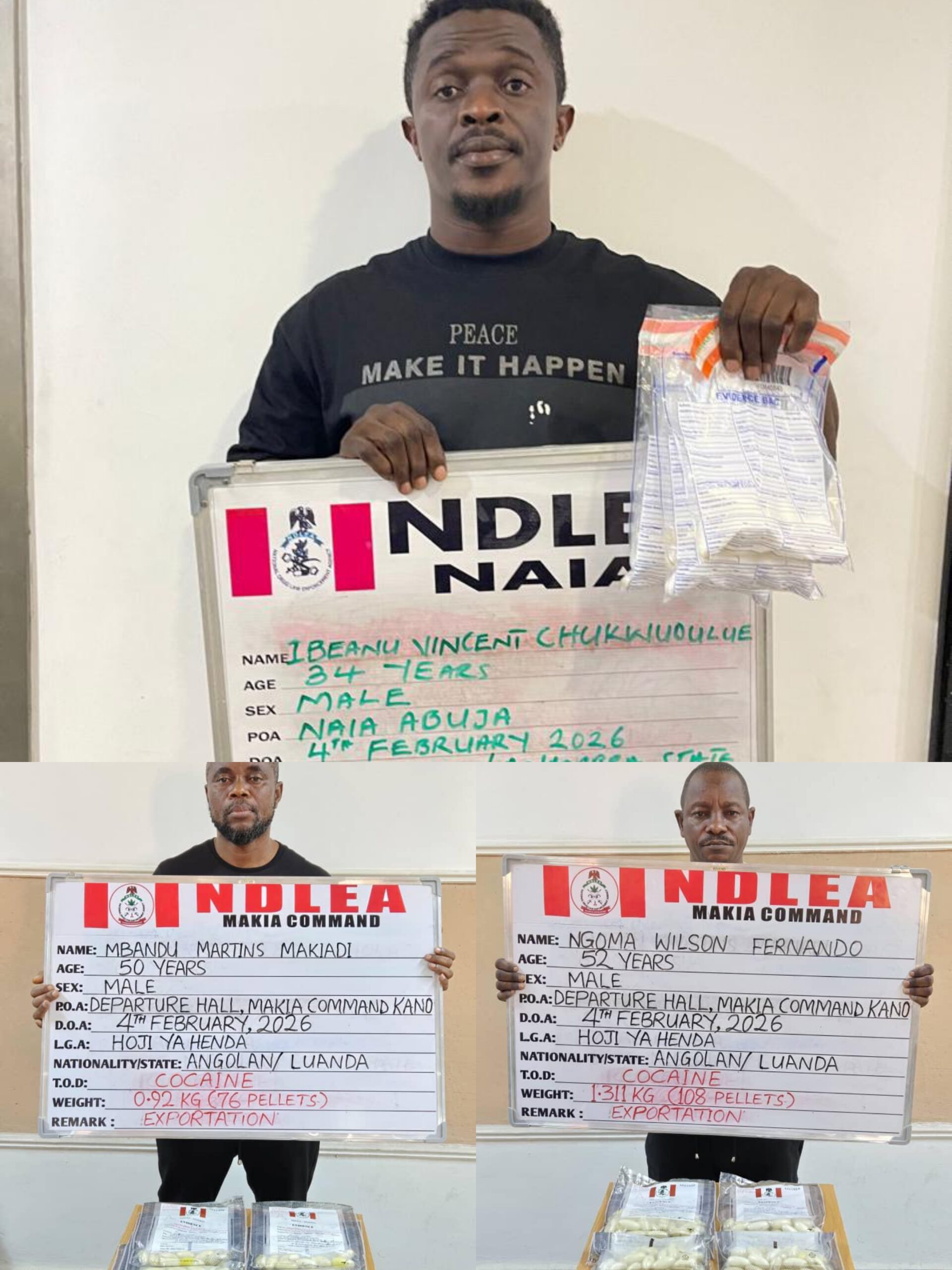 Operatives of the National Drug Law Enforcement Agency (NDLEA) have recorded major breakthroughs in ongoing nationwide anti-drug operations, arrested a China-based Nigerian businessman and two Angolan nationals who excreted a combined 236 wraps of cocaine after being intercepted at airports in Abuja and Kano. The arrests were disclosed on Sunday by NDLEA’s Director of Media and Advocacy, Femi Babafemi, who detailed a series of coordinated operations that also uncovered drug consignments concealed in food items, children’s toys, and a synthetic cannabis production facility in Lagos. According to Babafemi, the China-based…