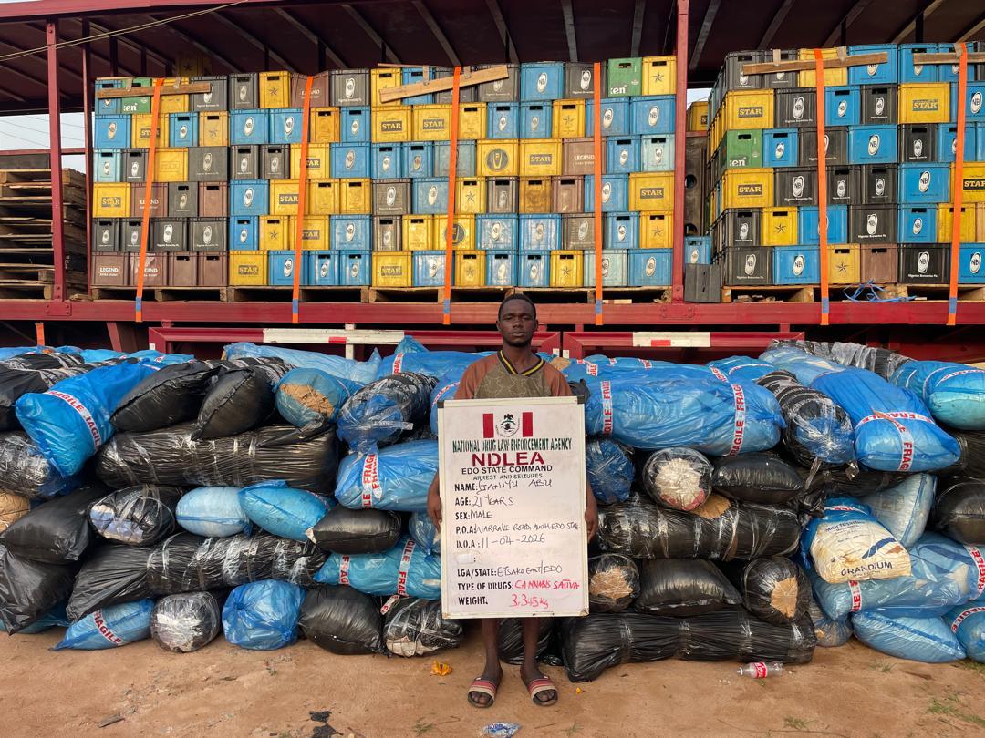 One of the largest seizures occurred in Edo State, where operatives intercepted two trucks carrying a combined total of 7,245 kilograms of processed cannabis concealed among cartons of beer. Five suspects were arrested in connection with the consignment, which was reportedly en route to Abuja.