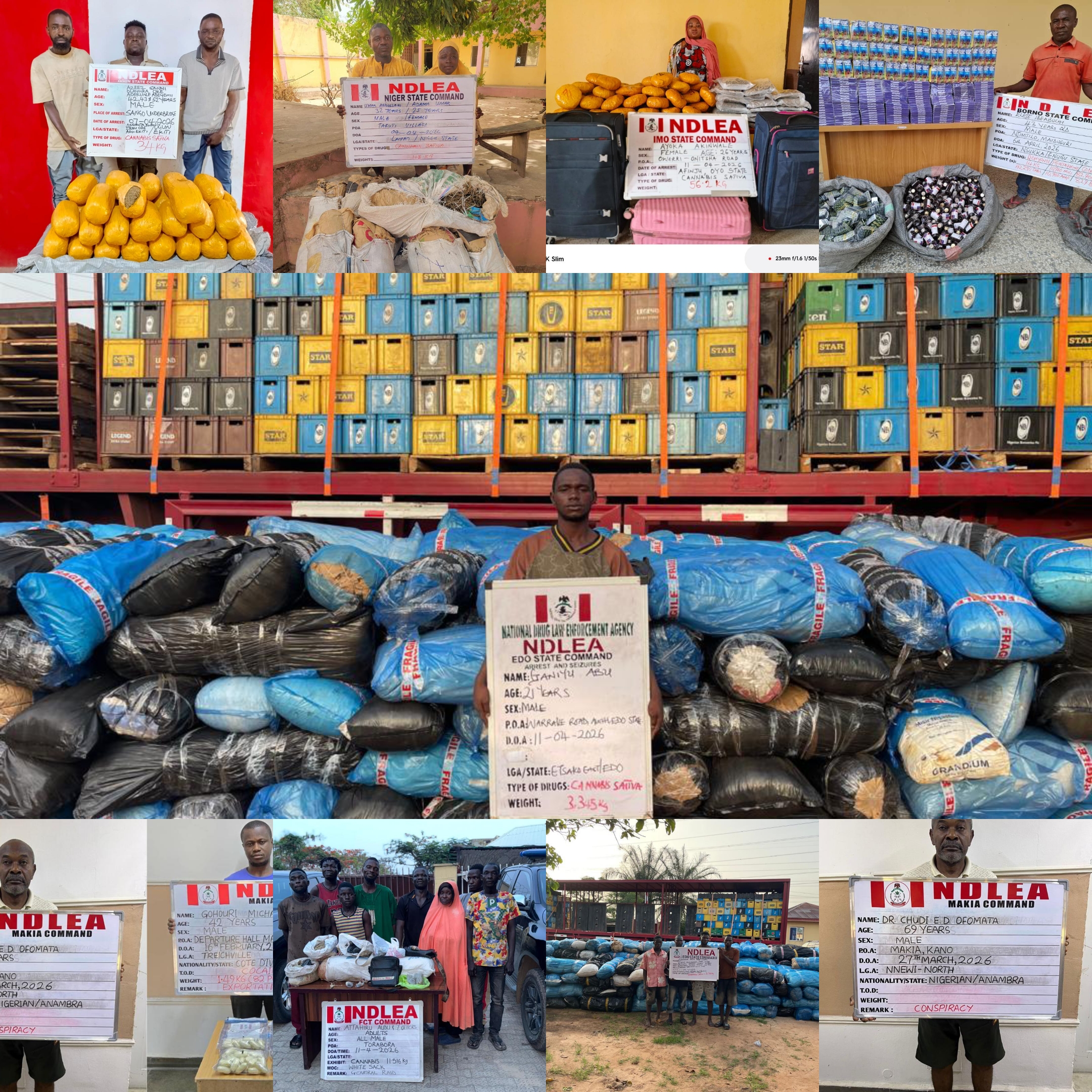 The National Drug Law Enforcement Agency (NDLEA) has intensified its nationwide crackdown on illicit drug trafficking, arresting a 93-year-old man, a 69-year-old medical doctor, and several other suspects in coordinated operations across multiple states.