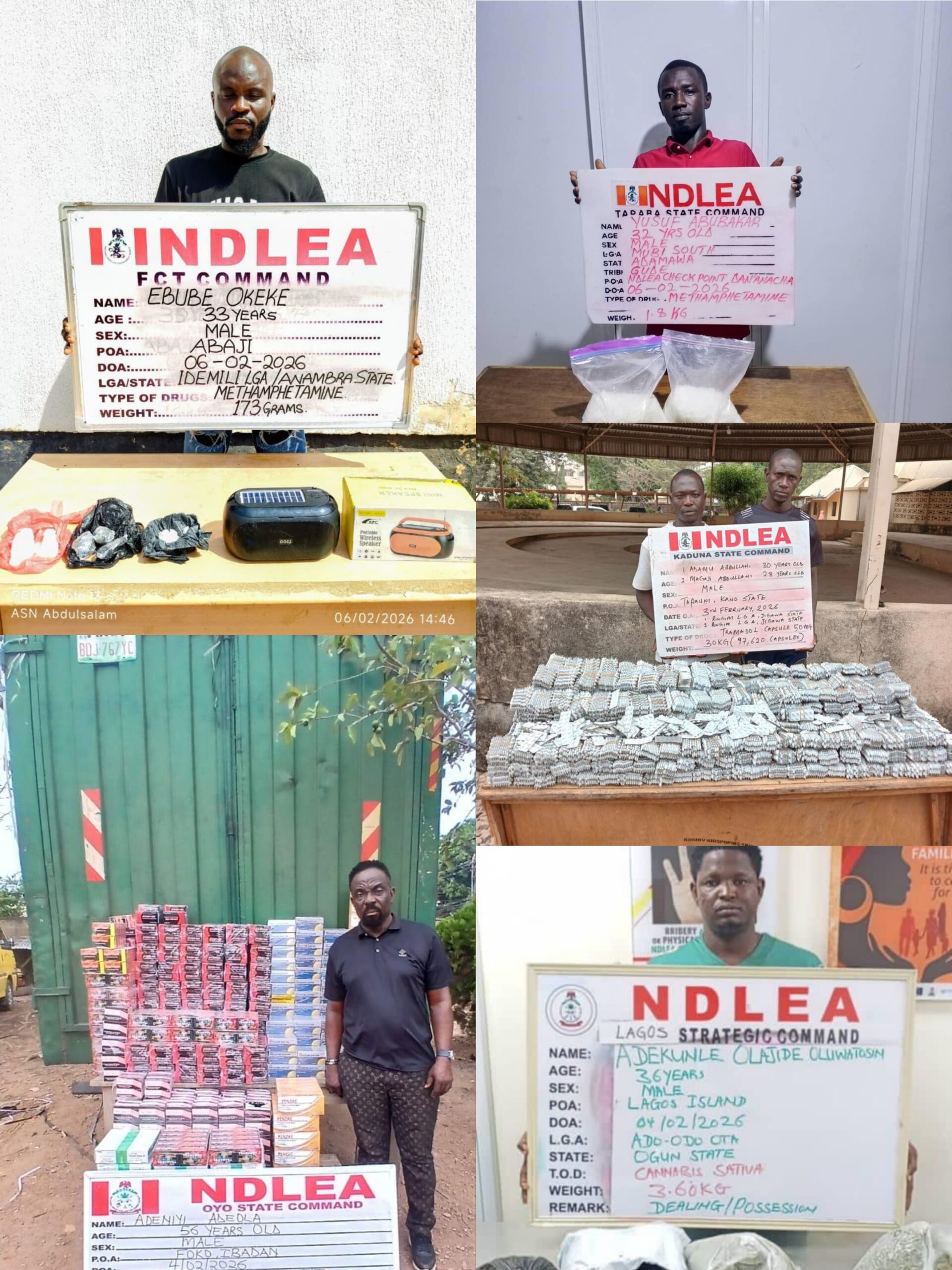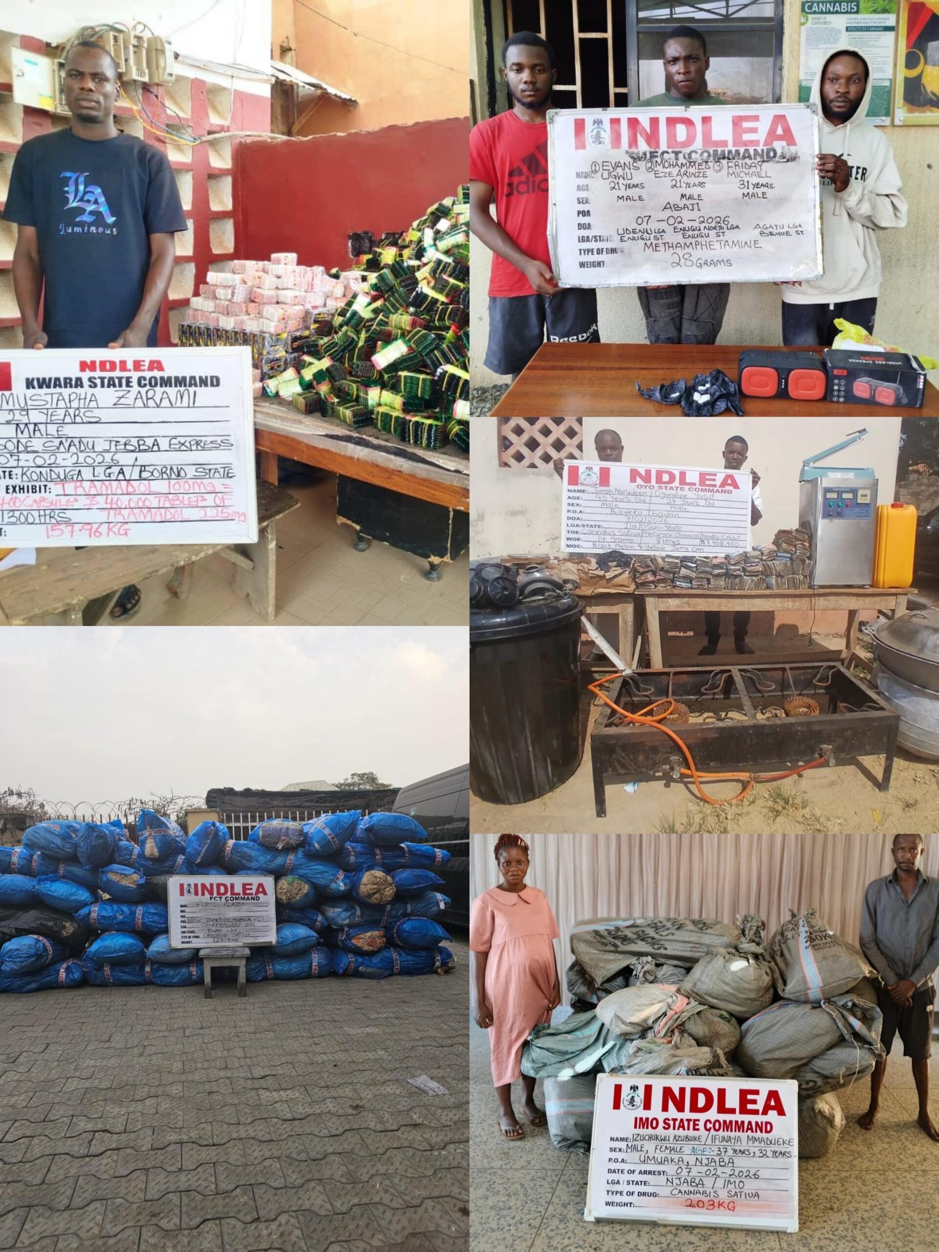 Commending the officers involved in the arrests and seizures, Chairman and Chief Executive Officer of NDLEA, Brig. Gen. Mohamed Buba Marwa (Rtd), urged personnel nationwide to sustain the agency’s professionalism and commitment in drug supply and demand reduction efforts.
