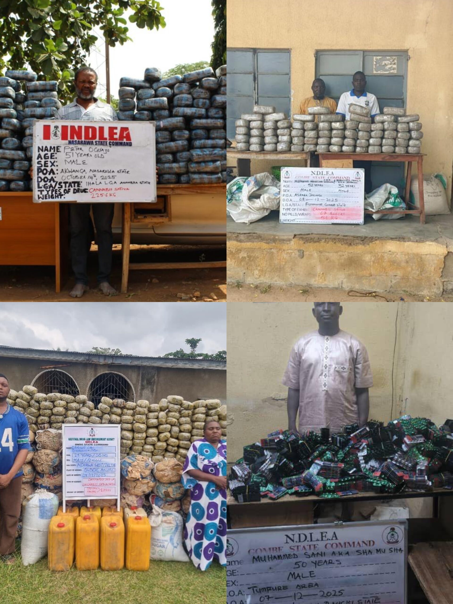 Further arrests were made in Gombe State, where suspects were apprehended with large consignments of tramadol capsules and skunk in separate operations.
