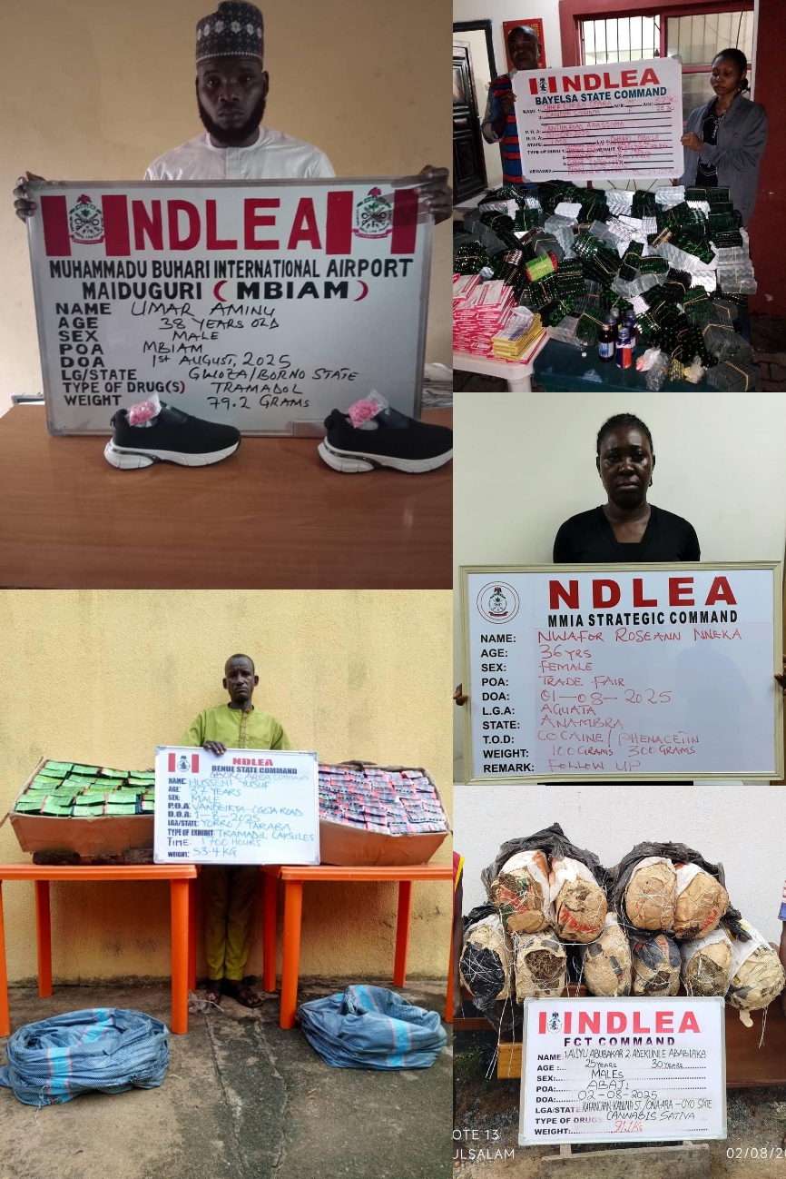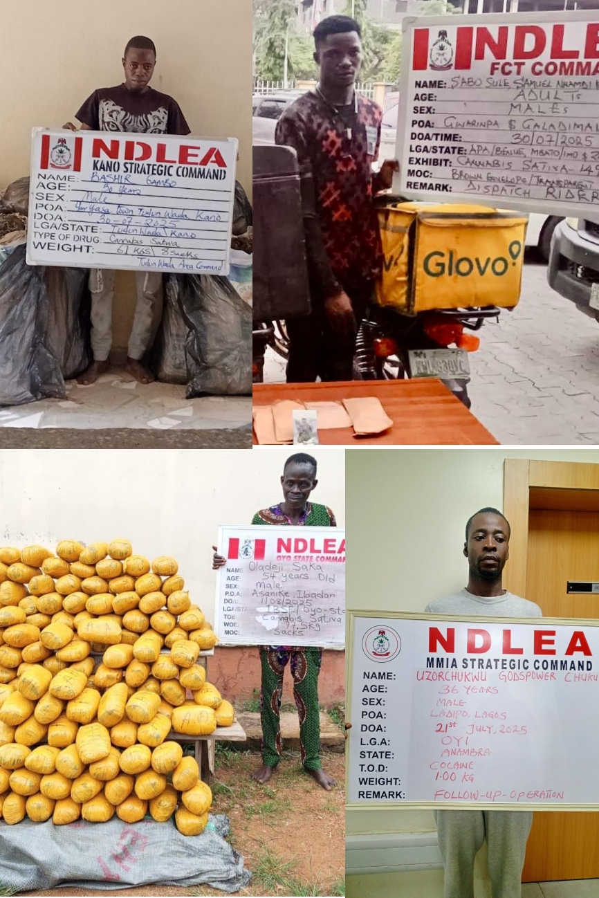 Commending the operations, NDLEA Chairman/Chief Executive Officer, Brig. Gen. Mohamed Buba Marwa (Rtd), applauded the officers and men of the MMIA, MBIAM, FCT, Lagos, Benue, Edo, Ogun, Oyo, Delta, Bayelsa, Kano, and Osun Commands for their vigilance, professionalism, and commitment to Nigeria’s anti-drug war.