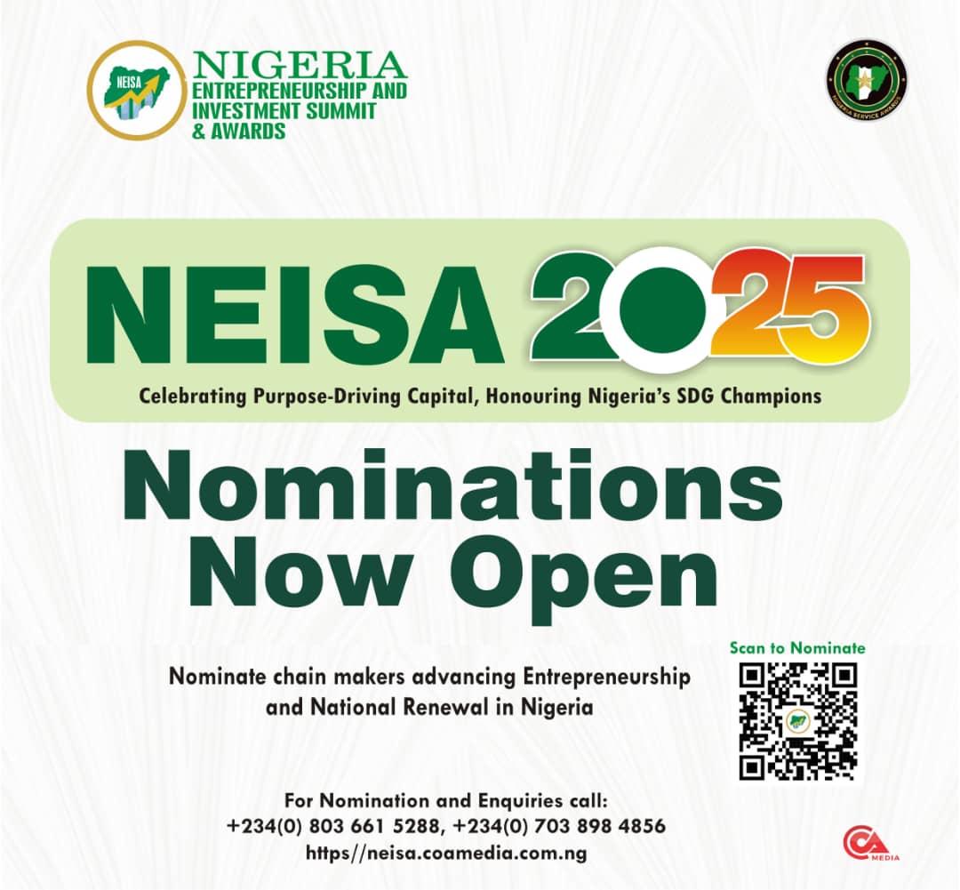 The Nigeria Entrepreneurship and Investment Summit & Awards (NEISA) has announced the commencement of nominations for the 2025 NEISA Impact Investment Awards & Gala, slated for Friday, November 21, 2025, in Abuja.