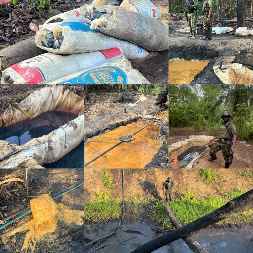 The military’s efforts in the Niger Delta region led to the discovery and destruction of 48 crude oil cooking ovens, 10 dugout pits, 56 storage tanks, and 46 illegal refining sites. Troops seized a total of 705,294 litres of stolen crude oil and other refined products, along with 28 boats, eight pumping machines, and six speedboats.