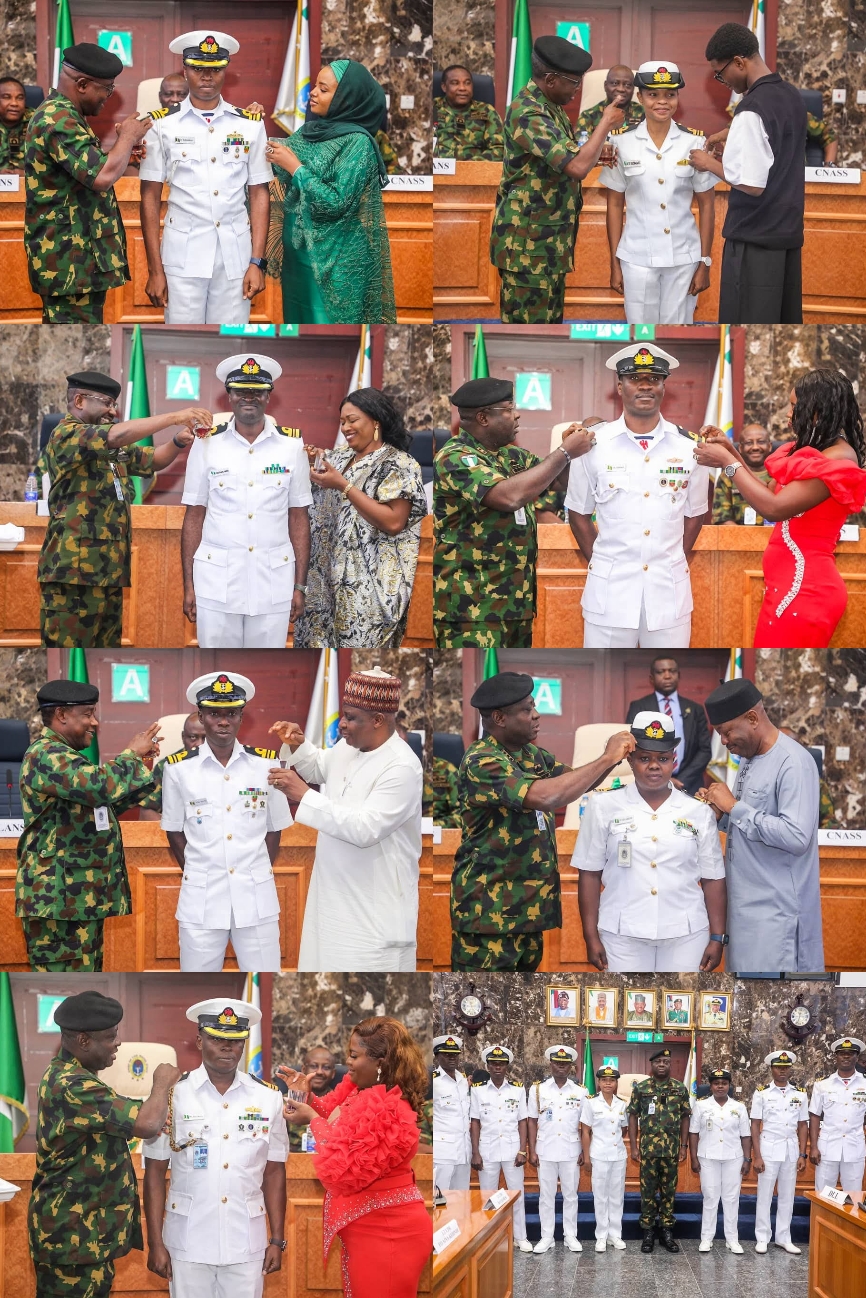 Chief of the Naval Staff (CNS), Vice Admiral Emmanuel Ikechukwu Ogalla, congratulated the officers and their families, commended their professionalism and commitment. He stressed that the promotions reflected not only individual achievements but also the invaluable support of their spouses and loved ones.