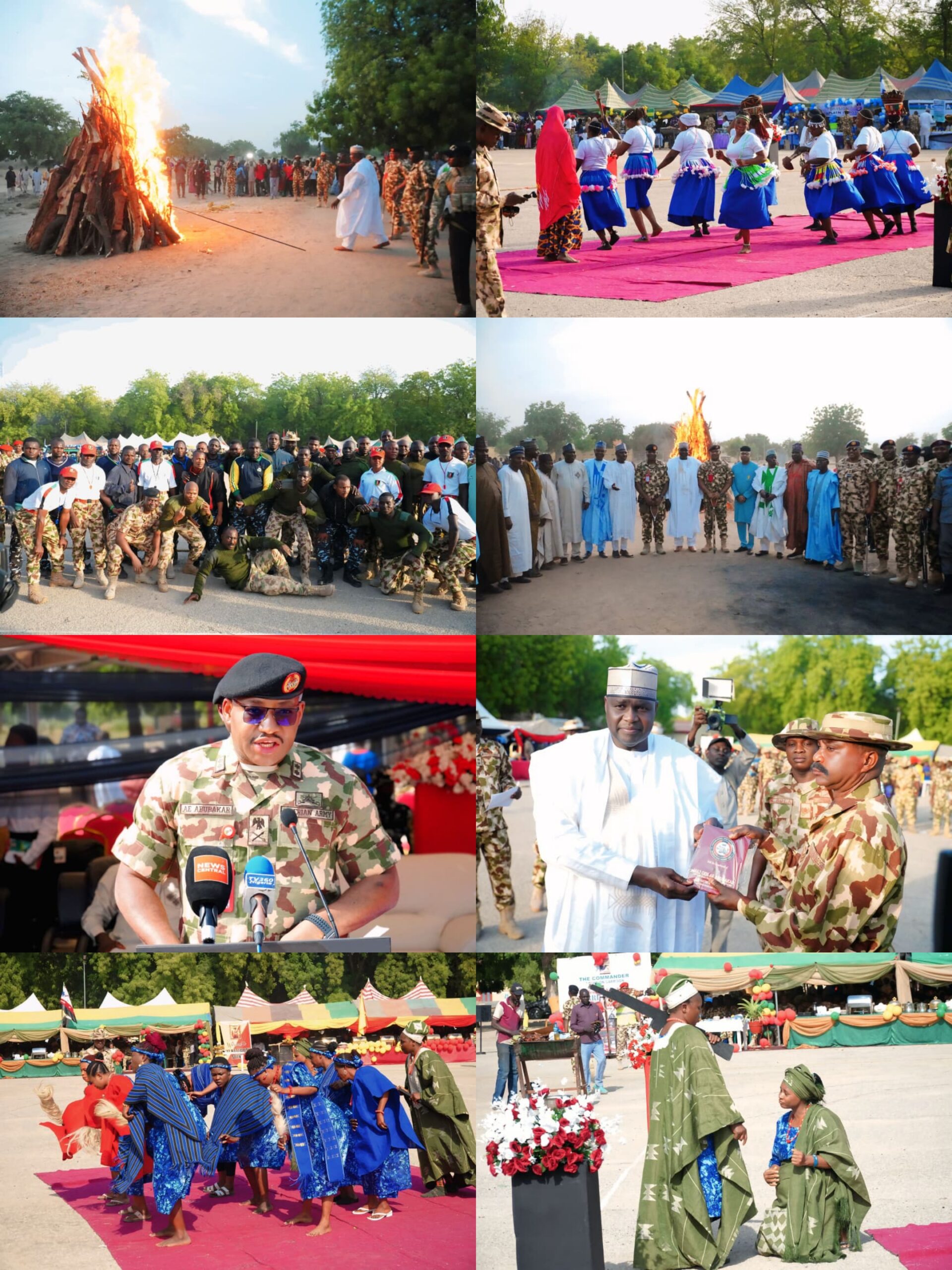 The ceremony featured colourful cultural performances from Nigeria’s geopolitical zones, a tug-of-war contest between the Nigerian Army and the Nigeria Police Force, comedy shows, award presentations to outstanding soldiers, a suya competition, presentation of souvenirs to special guests, and the symbolic lighting of a bonfire, which marked the climax of the event.
